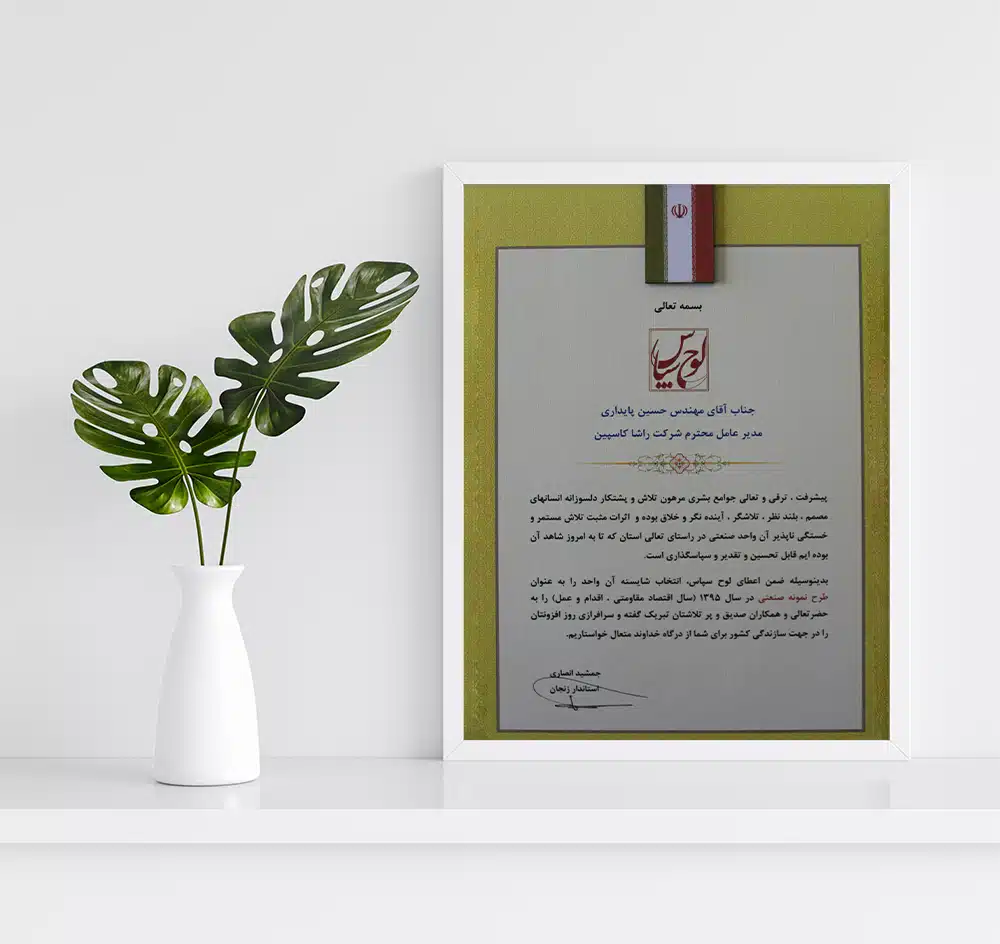 Zanjan Governor Certificate of Appreciation for Industrial Premier Plan