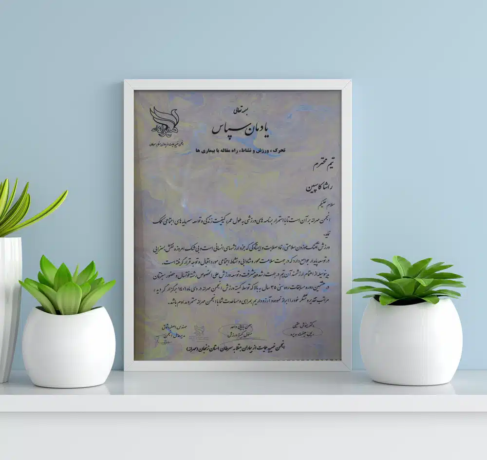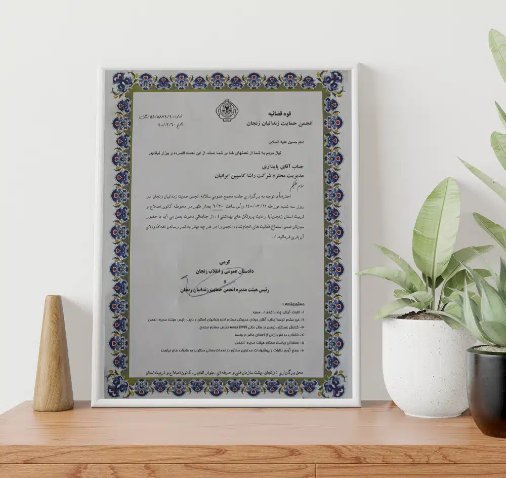 Zanjan Prosecutor Certificate of Appreciation for Charity Plans and Activities